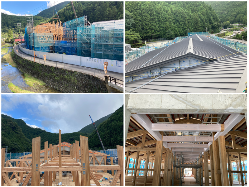 現在、全ての基礎工事を完了し、保育園棟は、木造構造材の柱が建ち始め、いよいよ建物としての形がみえるようになってきました。