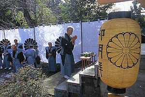 このように後醍醐天皇から始まった南朝の血は絶え、南北朝の動乱は終焉を迎えましたが、川上郷土たちの雄志は代々語り継がれ、毎年2月5日には、自天王を偲び、新年拝賀の儀式として朝拝式が、560年あまり経っても絶えることなく今日まで続いています。
