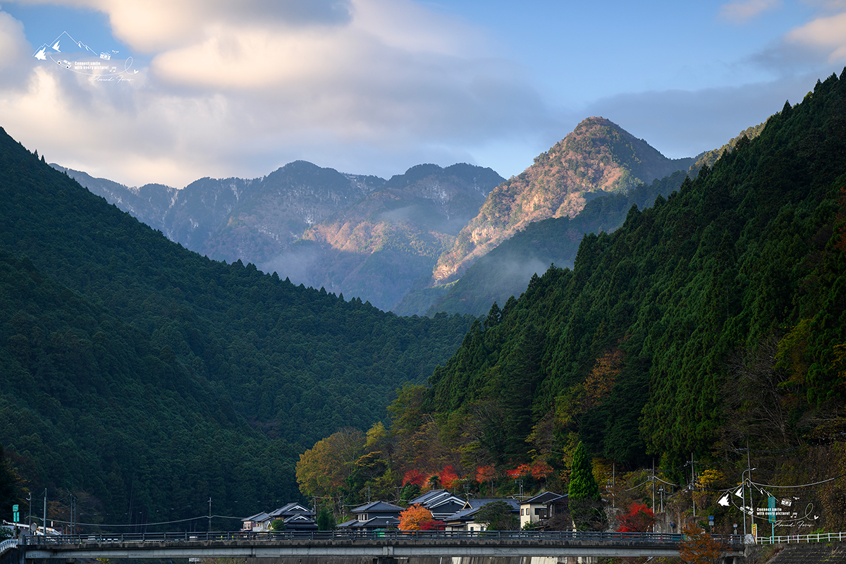 少し雪化粧した山上さんと、集落の紅葉の対比がなんとも美しいそんな朝でした。