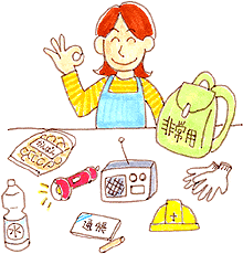 地震、土砂崩れ、河川の氾濫、豪雨、火事など災害はいつ起こるかわかりません。災害などの緊急事態が発生した場合は、関係区域に防災無線にて皆さんにご連絡いたしますが、日ごろから災害に備えて準備をしておいてください。また、家庭内でもいざという時のために防災について話し合いましょう。
